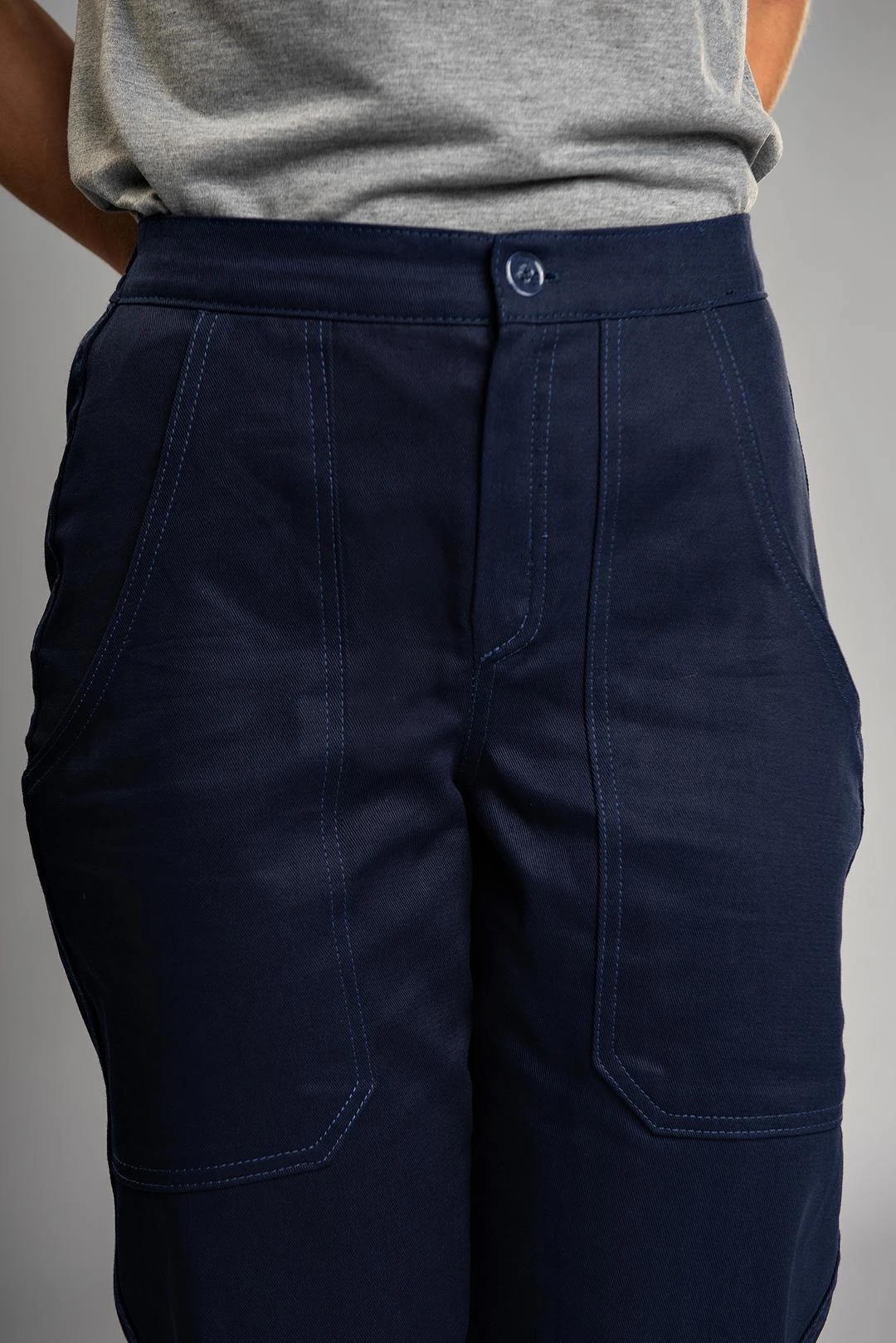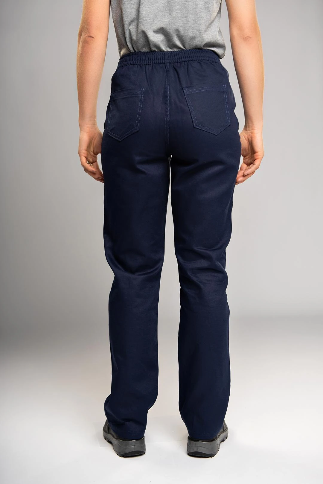 Calça feminina é uma peça de vestuário de trabalho que combina a resistência do tecido industrial com um design focado no conforto e na modelagem feminina, oferece excelente resistência e durabilidade, ideal para suportar o uso diário intenso. O algodão puro garante alta respirabilidade, proporcionando conforto térmico superior, especialmente em climas quentes, e é conhecido por sua maciez após as primeiras lavagens, é uma calça que oferece o visual clássico e resistente da sarja de algodão, com o benefício ergonômico e adaptável da cintura elástica.